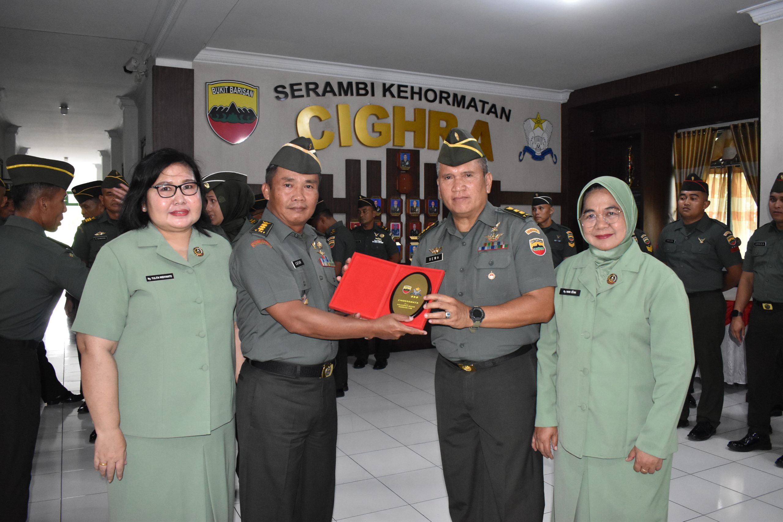 Sebagai bentuk penghormatan, Kahubdam I/BB secara simbolis menyerahkan piagam penghargaan dan cendera mata kepada Letkol Cke Kumala Dewa dan PNS purnatugas sebagai kenang-kenangan dan wujud apresiasi dari satuan.